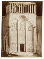Alinari, Fratelli — Bologna - Basilica di S. Stefano. Chiesa del S. Sepolcro. Antico Fonte battesimale ora tomba di S. Petronio