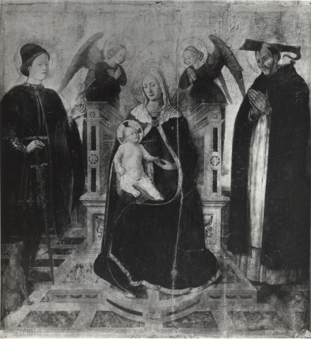 Istituto Centrale per il Catalogo e la Documentazione: Fototeca Nazionale — Antonio di Agostino di Ser Giovanni (Antonio da Fabriano) - sec. XV - Madonna con Bambino in trono tra san Donnino e san Pietro Martire