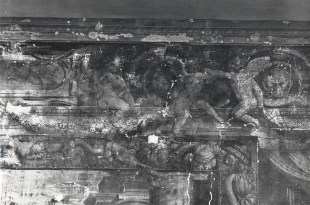 Anonimo — Raffaellino del Colle - sec. XVI - Fregio con putti alati, girali e cartigli