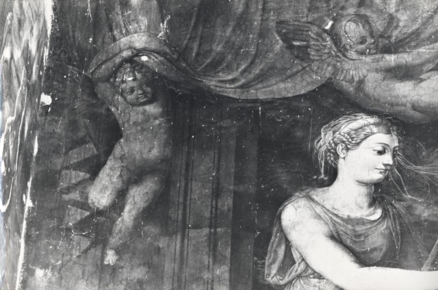 Anonimo — Raffaellino del Colle - sec. XVI - Allegoria del Battesimo e putto reggicortina