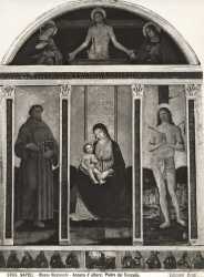 Cicino Francesco (Francesco da Caiazzo) — Madonna con Bambino, San Francesco d'Assisi (?), San Sebastiano, Cristo in pietà tra santa Maria Maddalena e san Giovanni Evangelista, Cristo risorto e apostoli