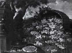 Brueghel Abraham — Natura morta con frutta, fiori e base scolpita