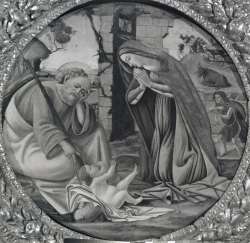 Filipepi Alessandro (Sandro Botticelli), bottega — Adorazione del Bambino con san Giuseppe e san Giovannino