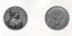 Anonimo italiano sec. XVI — Ritratto di Caterina Capalla, Impresa con ramo di corallo