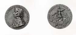Anonimo italiano sec. XVI — Ritratto di Filippo Cassoli, Impresa con Apollo e immagine di città fortificata