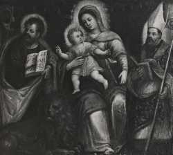 Anonimo veneto sec. XVI — Madonna con Bambino tra san Marco e un santo vescovo