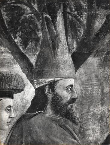 Gabinetto Fotografico della Soprintendenza Speciale per il Patrimonio Storico, Artistico ed Etnoantropologico e per il Polo Museale della città di Firenze — Pietro di Benedetto dei Franceschi (Piero della Francesca) - sec. XV - Dignitario al seguito dell'imperatore Eraclio