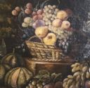 Anonimo falsario sec. XIX/ XX - Natura morta con fiori, frutta e selvaggina