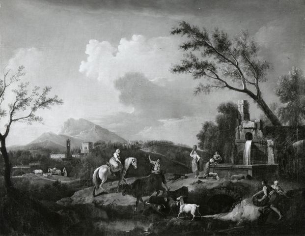 Istituto Centrale per il Catalogo e la Documentazione: Fototeca Nazionale — Bloemen Jan Frans van - sec. XVIII - Paesaggio con fontana e figure Istituto Centrale per il Catalogo e la Documentazione: Fototeca Nazionale