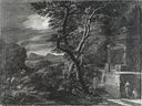 Rosa Salvator - seguace - sec. XVII - Paesaggio con fontana e figure