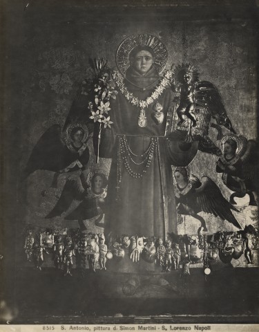 Moscioni, Romualdo S. Antonio, pittura di Simon Martini - S. Lorenzo Napoli 1900-1930 gelatina ai sali d'argento/ carta baritata Publifoto — Anonimo napoletano - sec. XV - Cristo benedicente tra gli apostoli; Angelo annunciante; Maria Vergine annunciata
