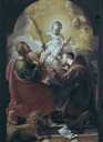 Anonimo romano sec. XVIII — Gesù Bambino tra sant'Antonio da Padova e san Marco Evangelista Anonimo romano sec. XVIII