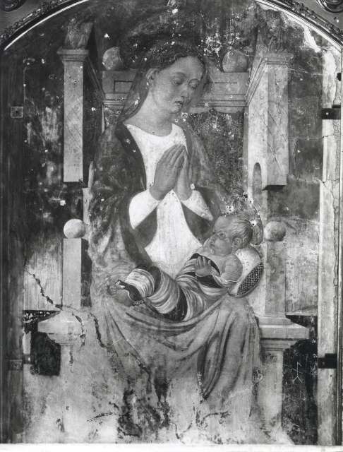 Anonimo fiorentino sec. XV Madonna con Bambino in trono 1440-1460 Oratorio della Madonna dei Terremoti, Scarperia Anonimo fiorentino sec. XV — Madonna con Bambino in trono e angeli musicanti