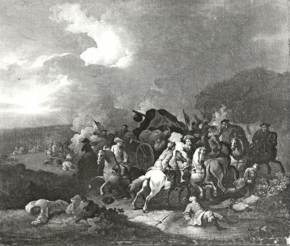 Alexandre van Gaelen. Scontro di cavalieri attorno ad un carro