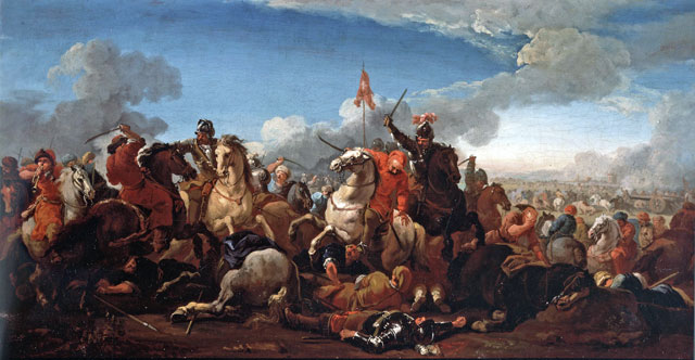 Anonimo — Courtois Jacques (Borgognone) - sec. XVII - Battaglia tra cavalieri turchi e cristiani