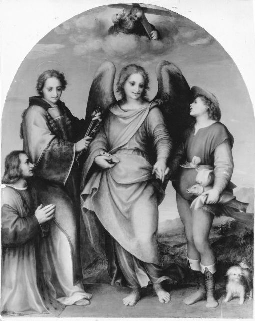 Andrea d'Agnolo - sec. XVI - Arcangelo Raffaele, Tobiolo, san Leonardo e Leonardo Morelli