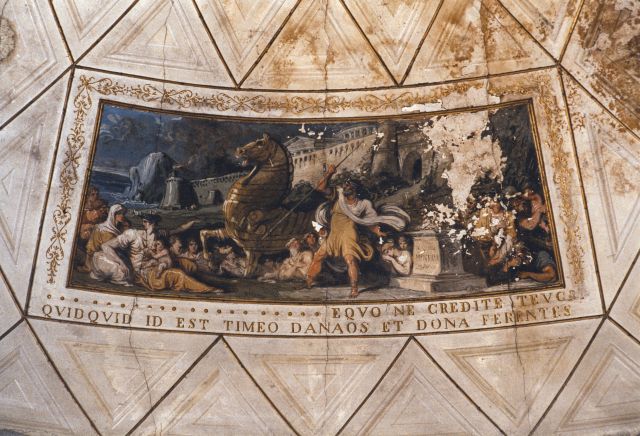 Anonimo — Laocoonte e il cavallo di legno, 1817-1818, particolare, Sala della Guerra di Troia. Faenza, palazzo Pasolini Dall'Onda.