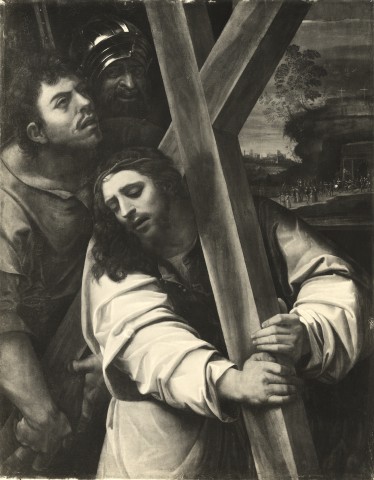 Anonimo - sec. XVI - Cristo aiutato da Simone il Cireneo a portare la croce