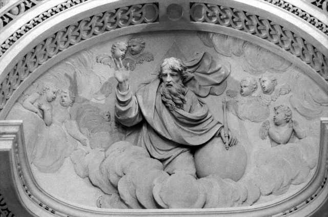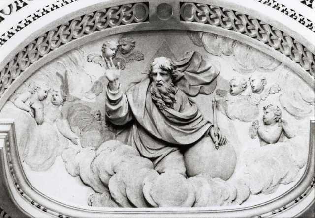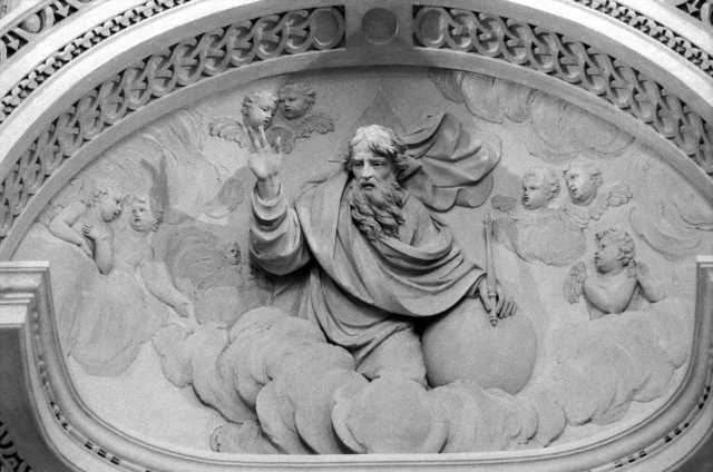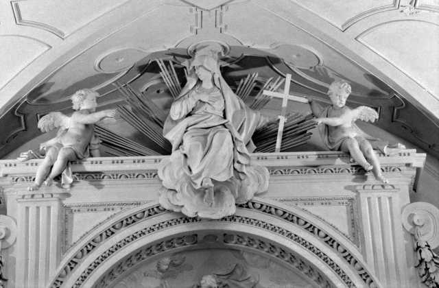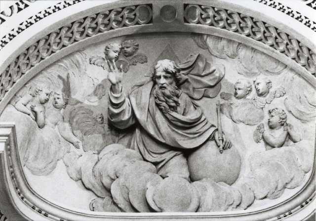 Allegoria della Fede, della Speranza e della Carità, Padre Eterno benedicente, Angeli reggifestone, Putti alati