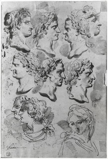 Giani Felice, Allegoria dell'Invenzione della pittura, Studi di teste di imperatori e teste femminili