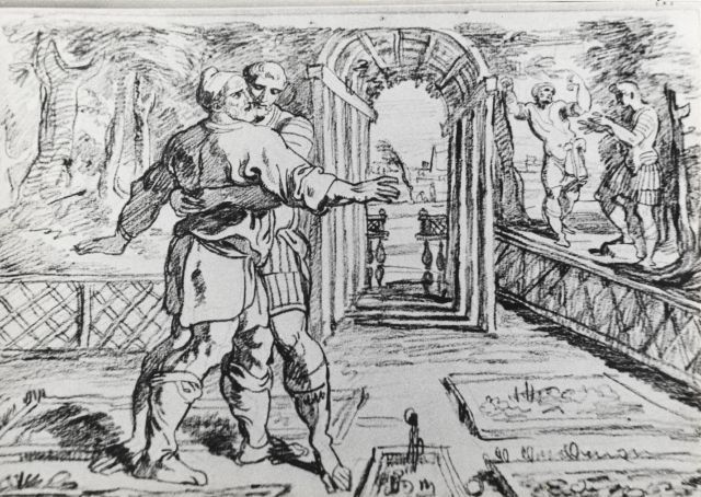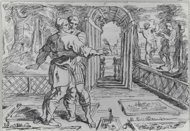 Copia tratta dalle acqueforti che T. van Thulden dedicò alle Storie di Ulisse affrescate da F. Primaticcio e allievi sulle pareti della galleria di Ulisse a Fontainebleau (il ciclo fu distrutto nel 1738-1739); vedi Bibliografia.