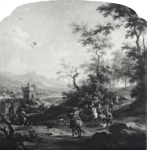 Cignaroli Vittorio Amedeo Gaetano, Paesaggio con caccia con il falcone